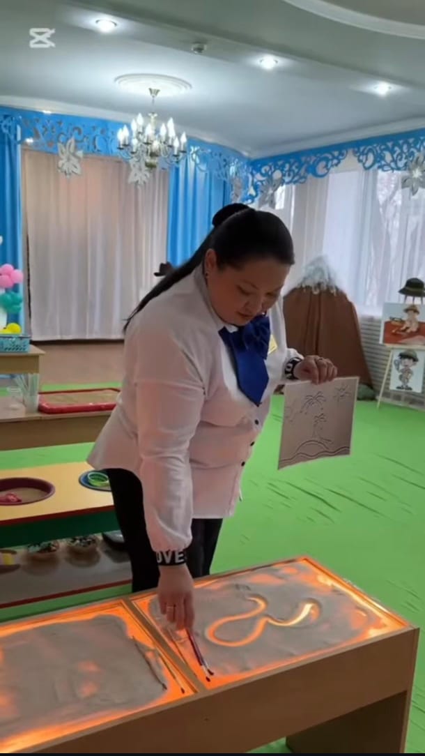 Семинардың мақсаты: Құм терапиясы арқылы балалардың психологиялық жағдайын жақсарту, шығармашылық және сенсорлық қабілеттерін дамыту. Іс-тәжірибелерімен бөлісті Меңгеруші: Спанова Т.В., әдіскер: Баймұханова Қ.Е., музыка жетекешісі: Тажбаева Д.М., психолог: Аманова Д.А., дене шынықтыру нұсқаушысы: Отарбаева Ж.О., тәрбиеші: Кункаева Г.С.